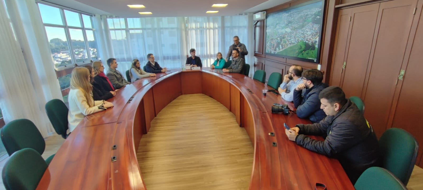 Legenda: Anúncio foi feito em coletiva de imprensa da prefeitura municipal de Carlos Barbosa.