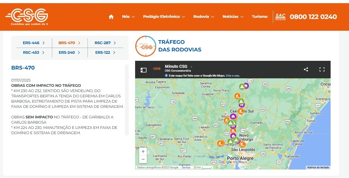 Segundo Ricardo Peres, diretor-presidente da CSG, o site é uma importante ferramenta no atendimento aos clientes da concessão. Ele destaca que o Maps da CSG, disponível na plataforma, pode ser conectado ao GPS do veículo e avisar também sobre os pedágios eletrônicos e bases de atendimento para informações e pagamento da tarifa.