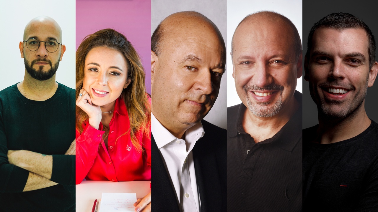 Legenda 3: Bruno Pinheiro, Gisele Paula, José Salibi Neto, Sandro Magaldi e Thiago Concer (esquerda para a direita) subirão ao palco do UCS Teatro no dia 29 de setembro.