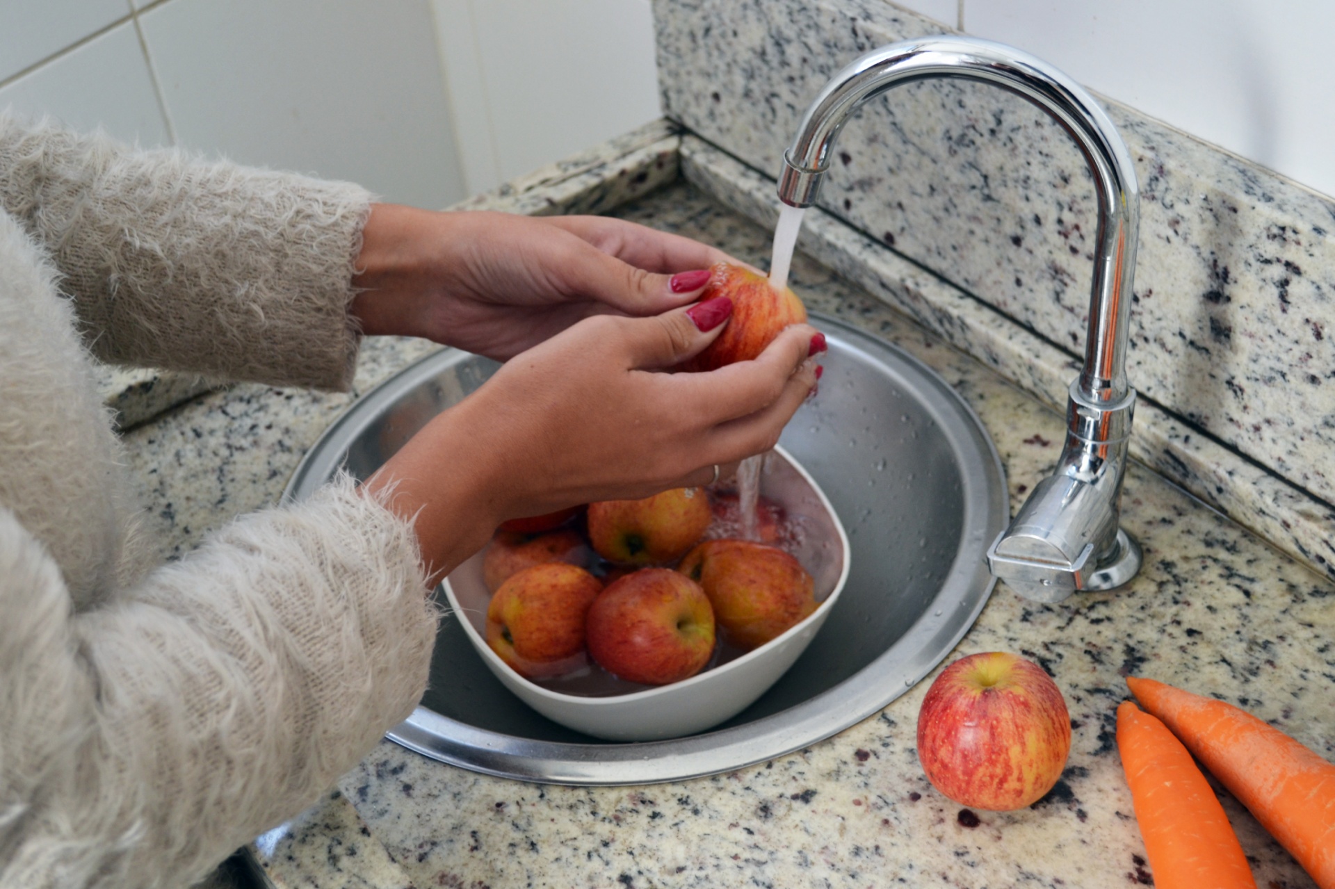 “Mantenha os itens perecíveis como carnes, laticínios e alimentos prontos sempre refrigerados. Quando houver água, higienize os alimentos, lavando cuidadosamente frutas, legumes e verduras, removendo as partes danificadas. Posteriormente, faça uma solução de água clorada com uma colher de sopa cheia de água sanitária. Deixe de molho por cerca de 15 minutos. Depois é só escorrer, secar e esses alimentos estão prontos para consumo de forma segura”, explica Carla Ruffato.