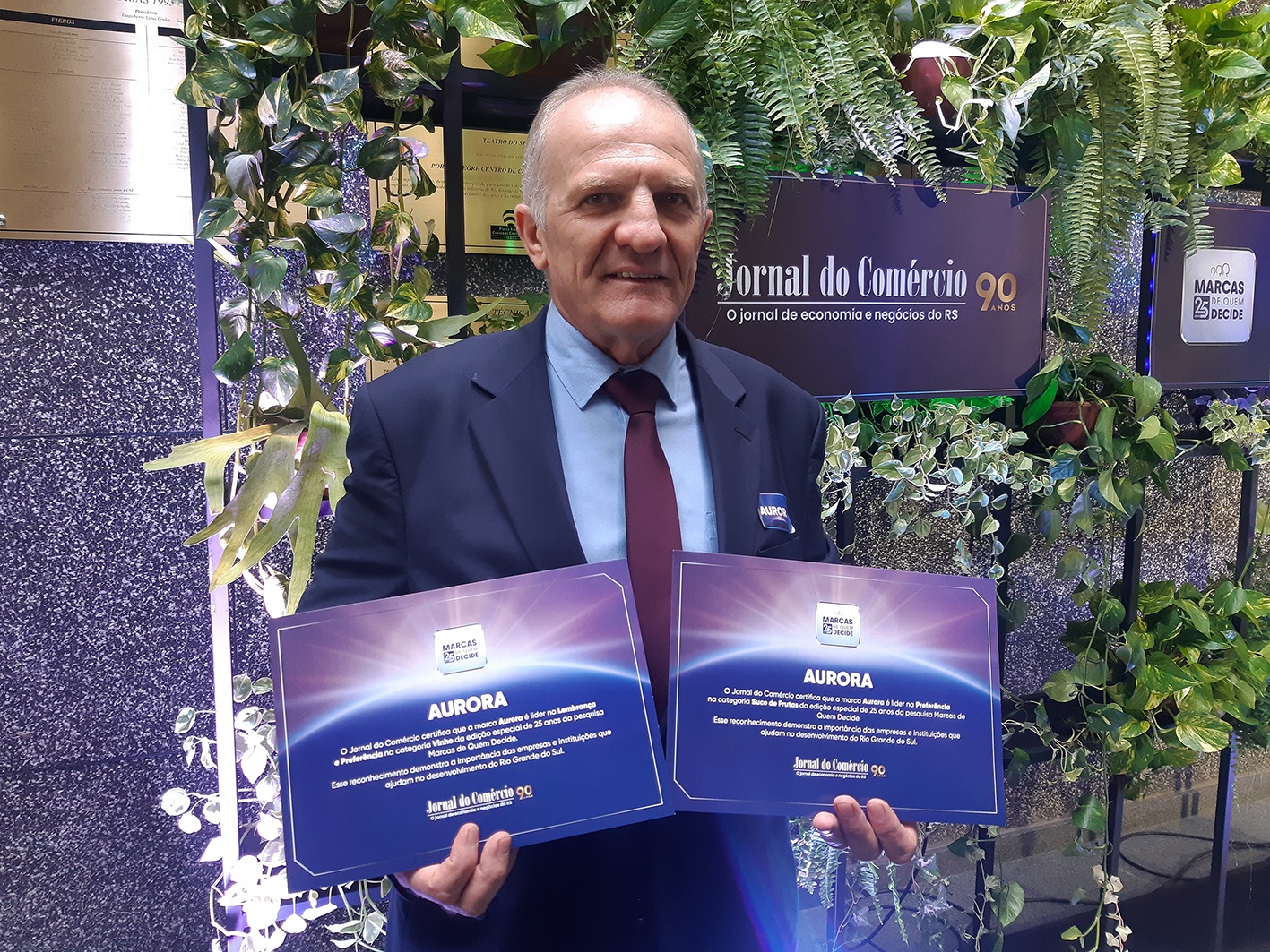 O presidente da Cooperativa Vinícola Aurora, Renê Tonello, representou os 1,1 mil produtores de uva associados e os 540 funcionários na premiação. A cerimônia ocorreu na manhã desta terça-feira (4), no Teatro do Sesi, em Porto Alegre (RS).